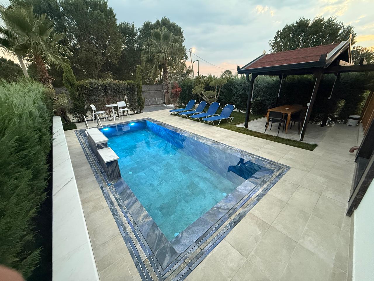 Enjoy the private garden with pool, BBQ area, and balconies. Suites include Wi-Fi, air conditioning, and flat-screen TVs for a comfortable stay.